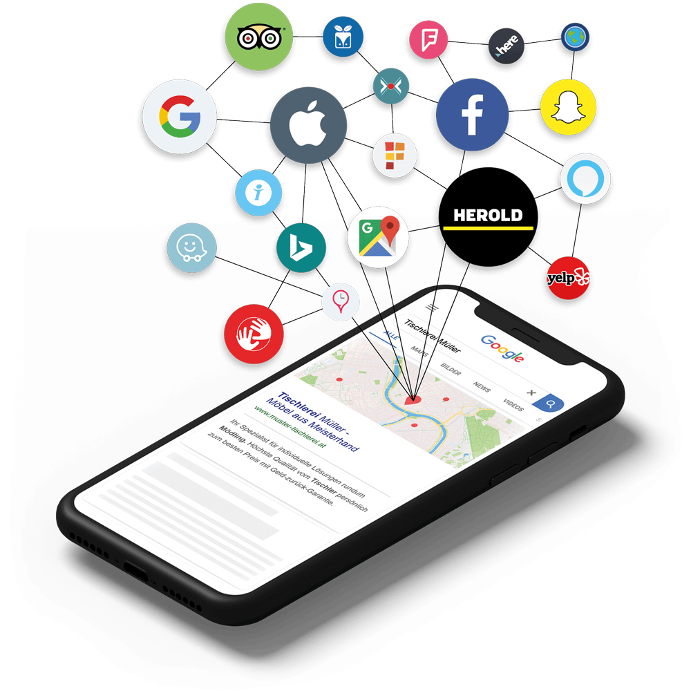 Ihre Unternehmensinfos auf mehr als 25 Online-Plattformen wie Google MyBusiness™, Facebook, HEROLD.at etc.