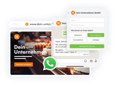 Das WhatsApp-Widget ist ein Add-on für Ihre Website, mit dem Kund:innen Sie direkt per WhatsApp kontaktieren können. So entstehen mehr Leads, kürzere Reaktionszeiten und eine persönlichere Kundenkommunikation.